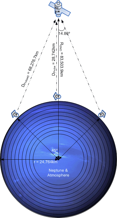 It is the purpose of this project to successfully design a communications link between three probes entering Neptune's atmosphere at -45º, 0º, and 45º by relaying the data collected by these probes successfully to the Earth. While these probes will descend 420km into the atmosphere over a 50 hour period, it will be necessary to relay this collected data to an orbiting satellite around Neptune to maintain this data and transmit it to Earth at appropriate times.